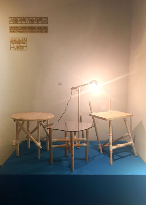 2015 광주 디자인비엔날레 <Maker Labs> 전시에 참여하였다. 체결45는 흔히 쓰이는 판과 원형봉으로 디자인된 체결45(3D 프린팅 부품)를 이용하여 제작된 티테이블이다. 체결45를 이용하면 누구나 쉽게 가구를 만들 수 있으며 추가로 연결하면 가구의 규모를 확장할 수
